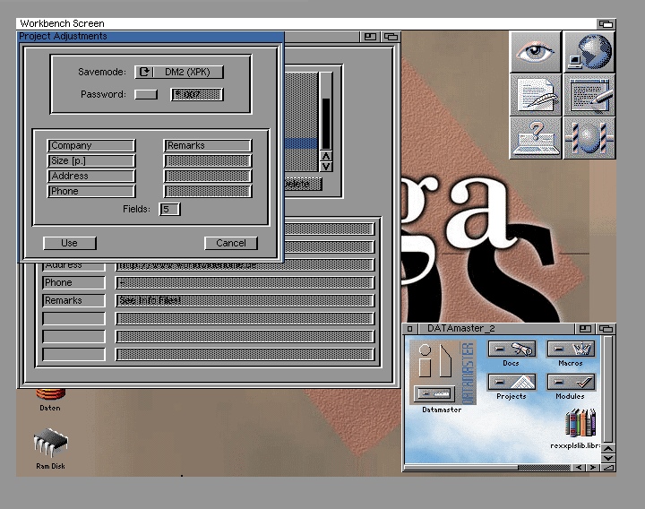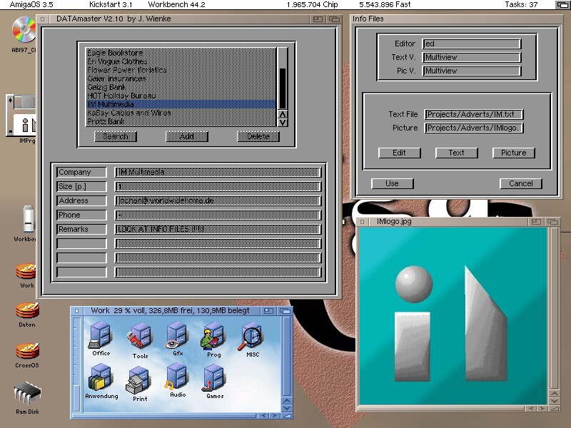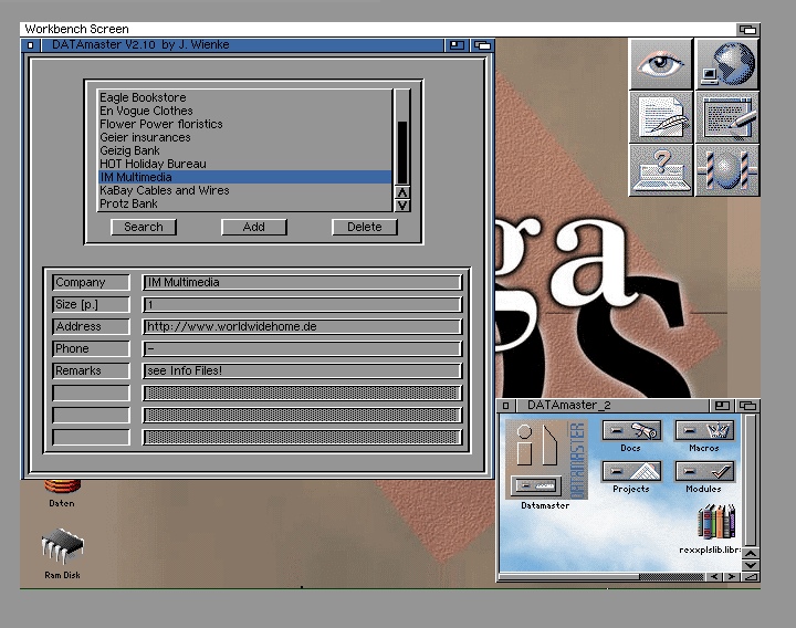 A database application runable on "newer" Amigas (e.g. A1200, A4000) with ARexx support. Has advanced features compared to AmigaBASIC DATAmaster and but supports also its file format. [ Screenshot 3 ] [ Screenshot 4 ] |