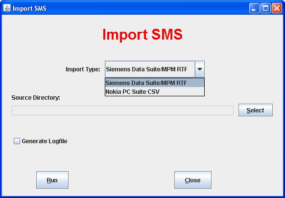 SMS DB is a small Java tool allowing import of SMS from different